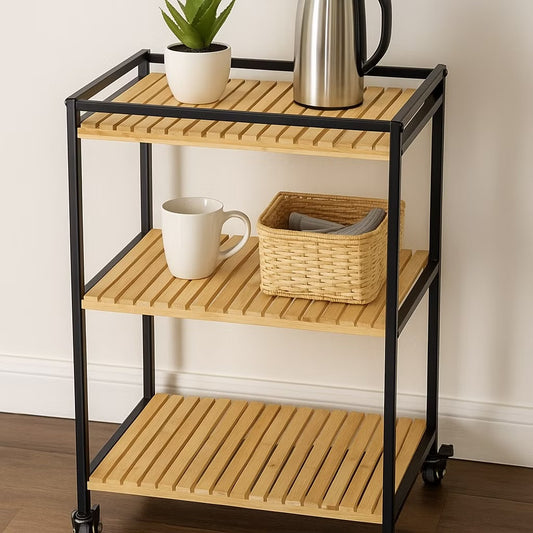 3-Tier Multipurpose Bamboo Trolley, 47x33x77cm, Natural Finish
