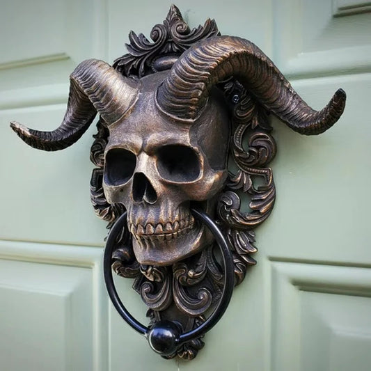 Resin Gothic Door Knocker with Goat Skull Decorative Design
