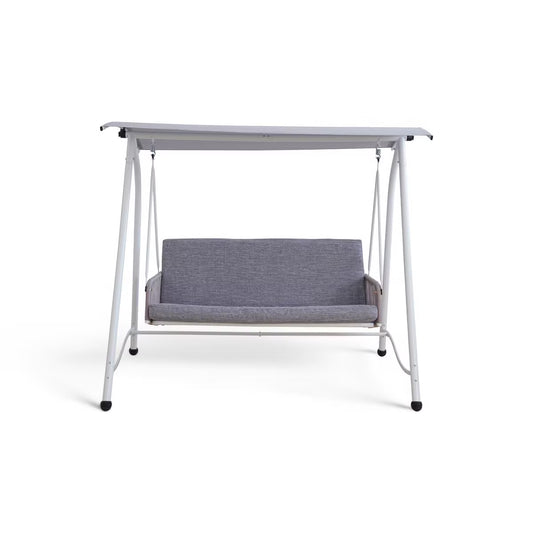 Serela 3-Seater Outdoor Swing Chair, White Steel Frame with Grey Cushions