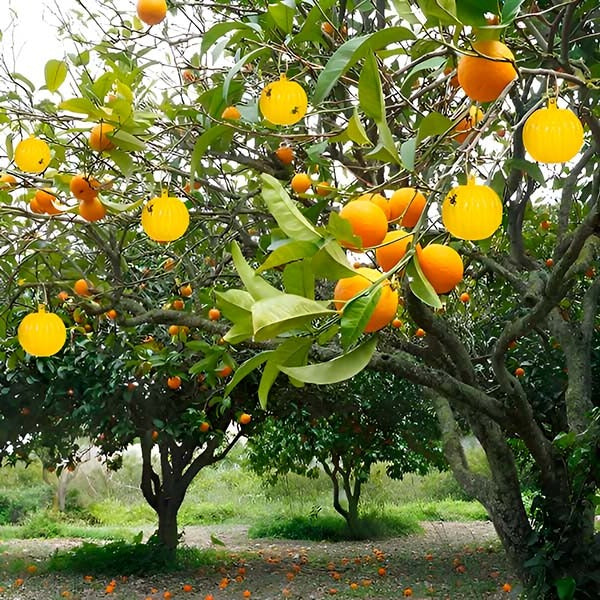 Each trap includes an adhesive surface intended to capture insects on contact. The lightweight design allows it to be hung from branches, beams, pergolas, or similar structures using a hook or tie. No tools are required for setup, and placement may be adjusted as needed.