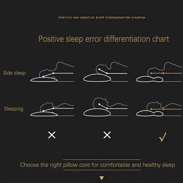 The pillow utilizes a division shaping technique in its construction. This design is intended to cradle the neck area for a contoured feel.