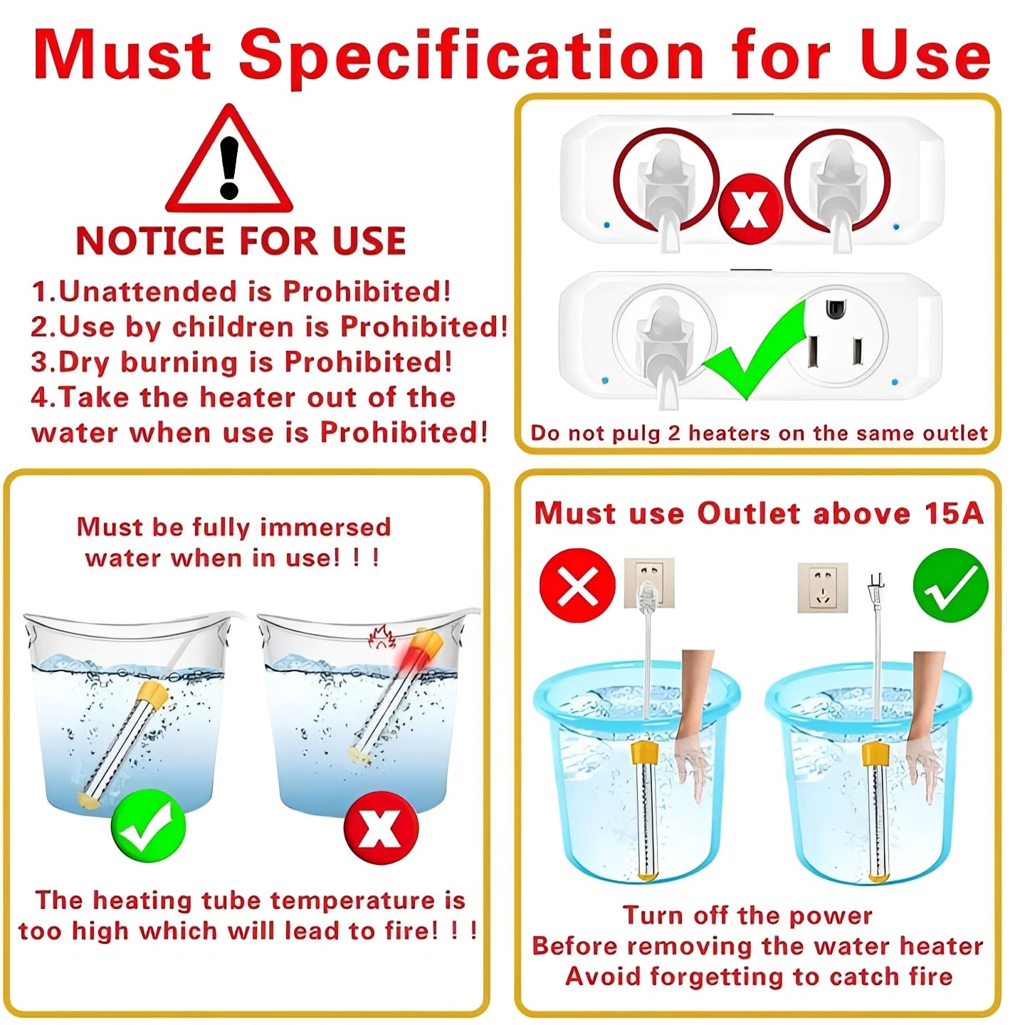 This immersion water heater is designed for heating water in compact spaces such as buckets, small tubs, or washbasins. It offers rapid performance, capable of heating 10 liters of water up 10 to 15 minutes. The lightweight and portable design makes it suitable for travel, camping, or use in non-plumbed areas.