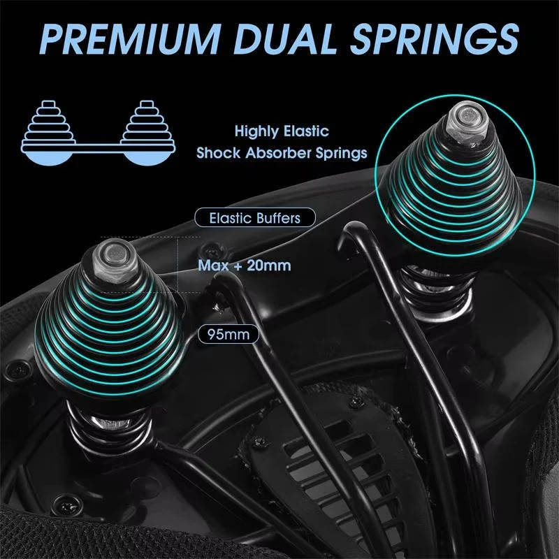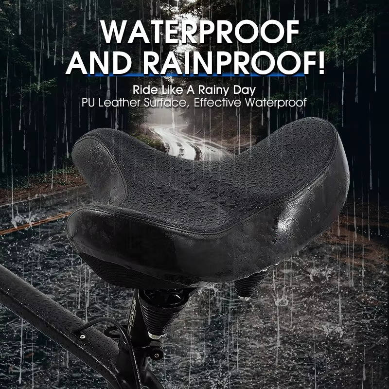 Built with a waterproof PU leather cover and non-slip grip dots, this saddle provides grip support in wet conditions. Dual shock-absorbing springs and a flexible bow system smooth out rough terrain, while widened reflective strips increase visibility at night.