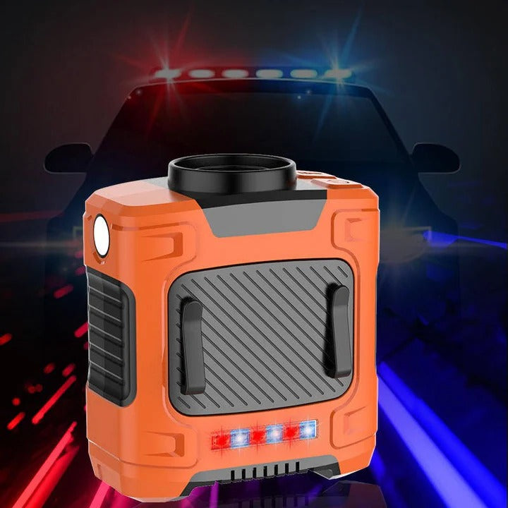 The silicone covering provides a soft outer surface while the unit includes a built-in LED light with a steady mode and an SOS option. A USB output port is included, allowing the fan to serve as an additional charging option for small devices when needed.