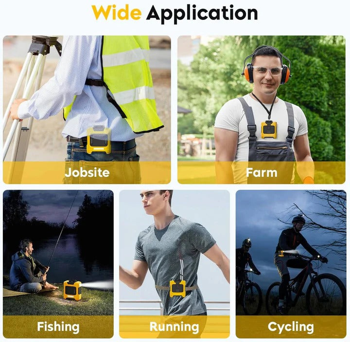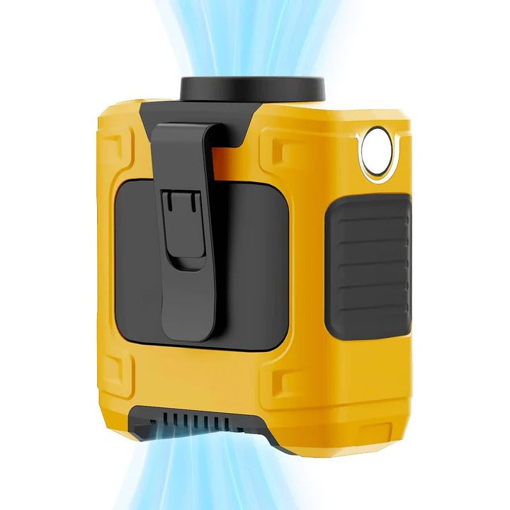 It can be used as a desk fan, clipped to a belt or shirt, or worn around the neck with the included lanyard.