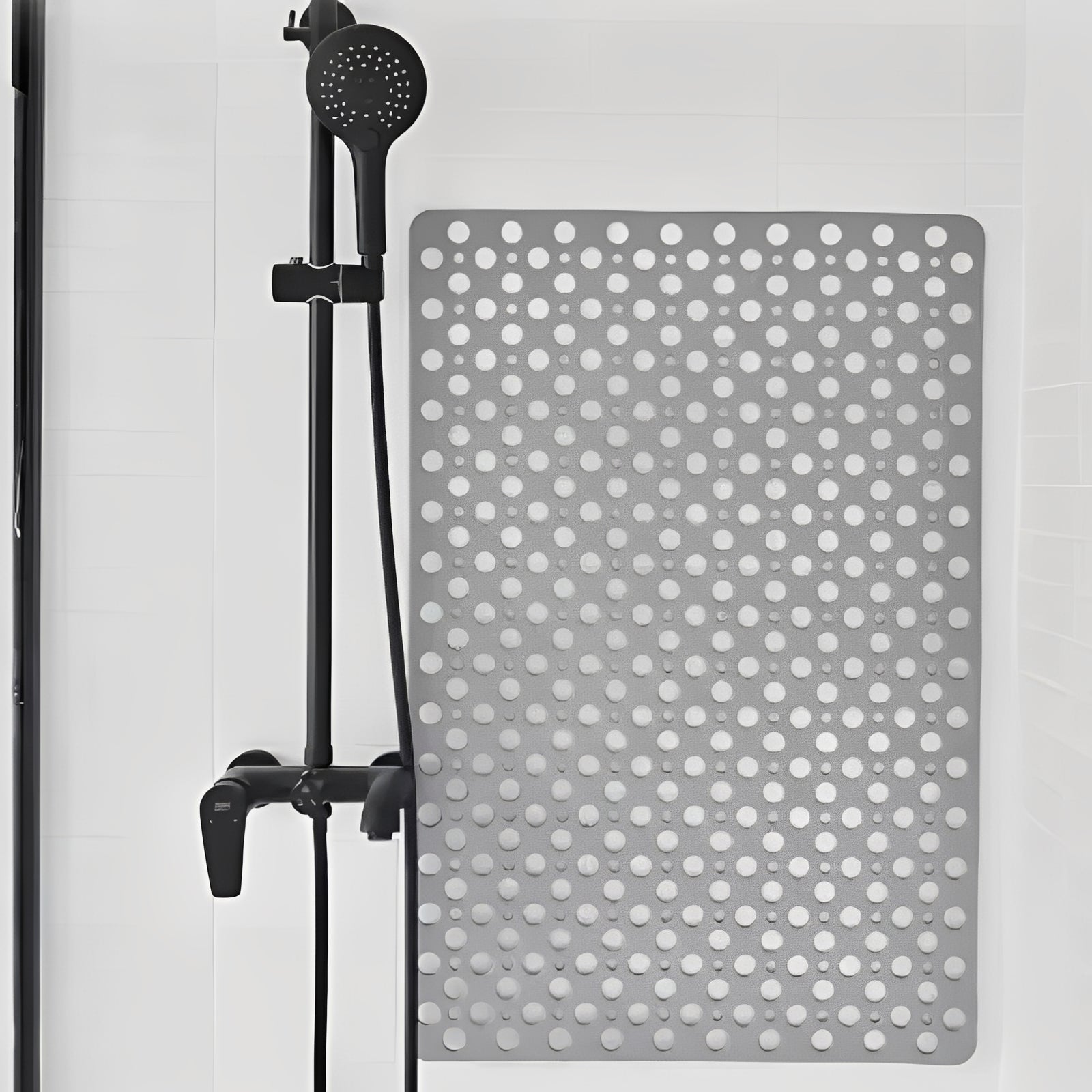This shower mat is designed to rest securely on smooth bathroom surfaces using a grid of suction cups on the underside. When placed correctly on a clean, flat surface, it helps provide additional grip underfoot during showering or bathing. The mat is intended to support a steadier standing surface in wet areas.