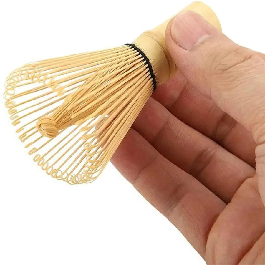 A: The set comes with a handmade bamboo whisk, a bamboo measuring spoon, and a ceramic matcha bowl.