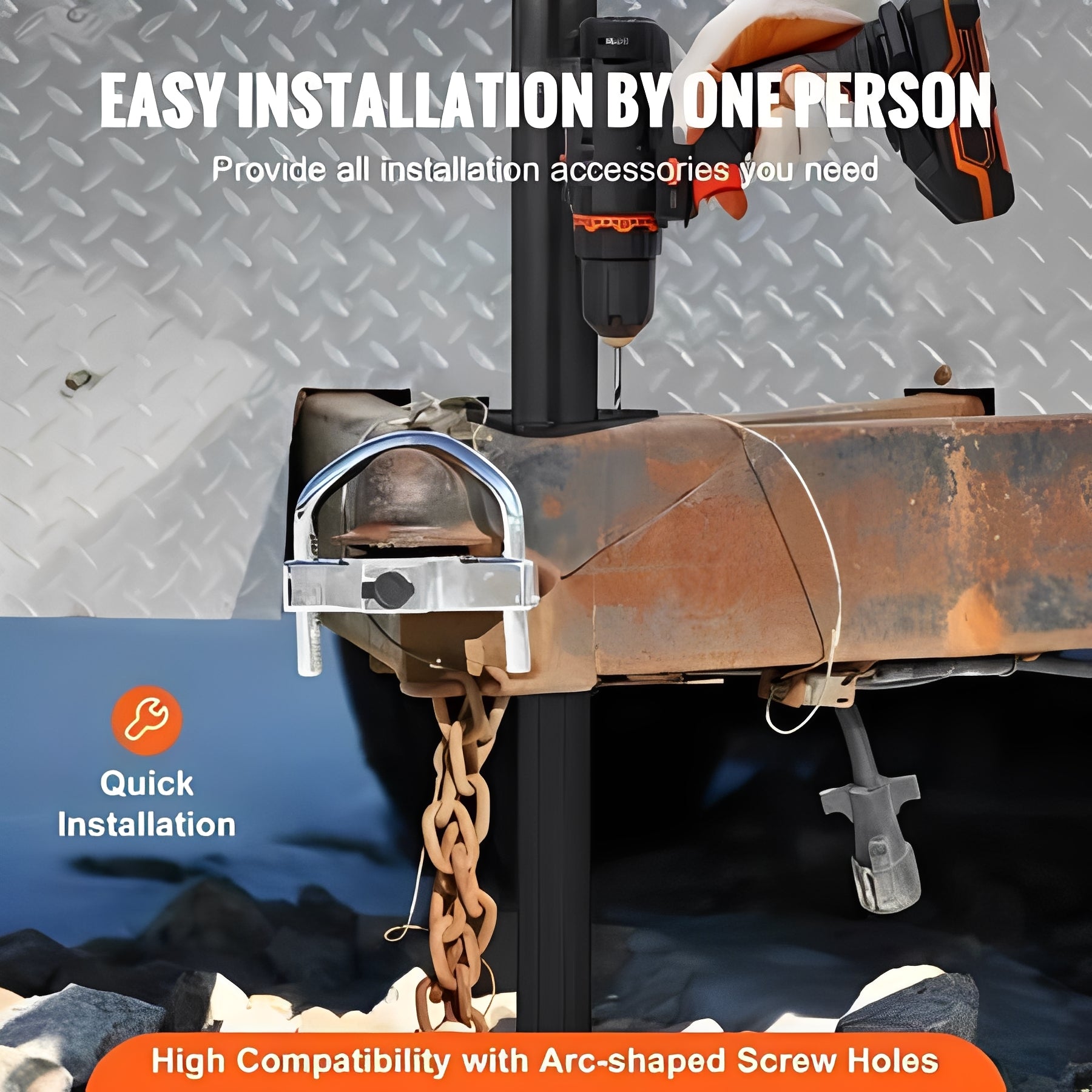This A-frame trailer jack is designed to lift and stabilize loaded trailers. It supports a lifting capacity of 5000 lbs. It is suitable for utility trailers, RVs, and boat haulers.